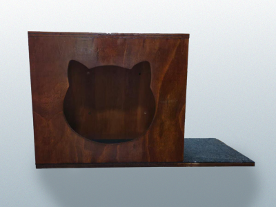 casa de gato de madera colocada en una pared con escaleras para que el gato entre a su refugio flotante fijado a la pared
